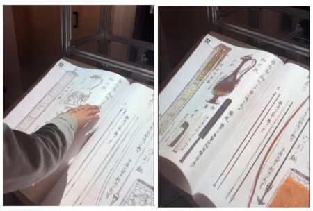 〈めくってみよう「御宝物図絵」〉は、東京国立博物館で初めて導入される、本のかたちをしたインタラクティブコンテンツです。ブック型デジタルコンテンツは、日本では博物館での導入例が極めて少なく、博物館における新たな文化財の楽しみ方を提案するものです。